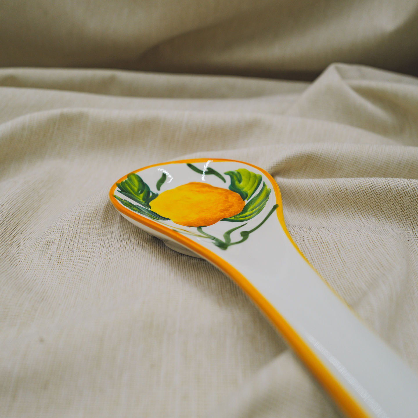 Krāsa: Balta virsma ar dzeltenu citroni (roku gleznojums)